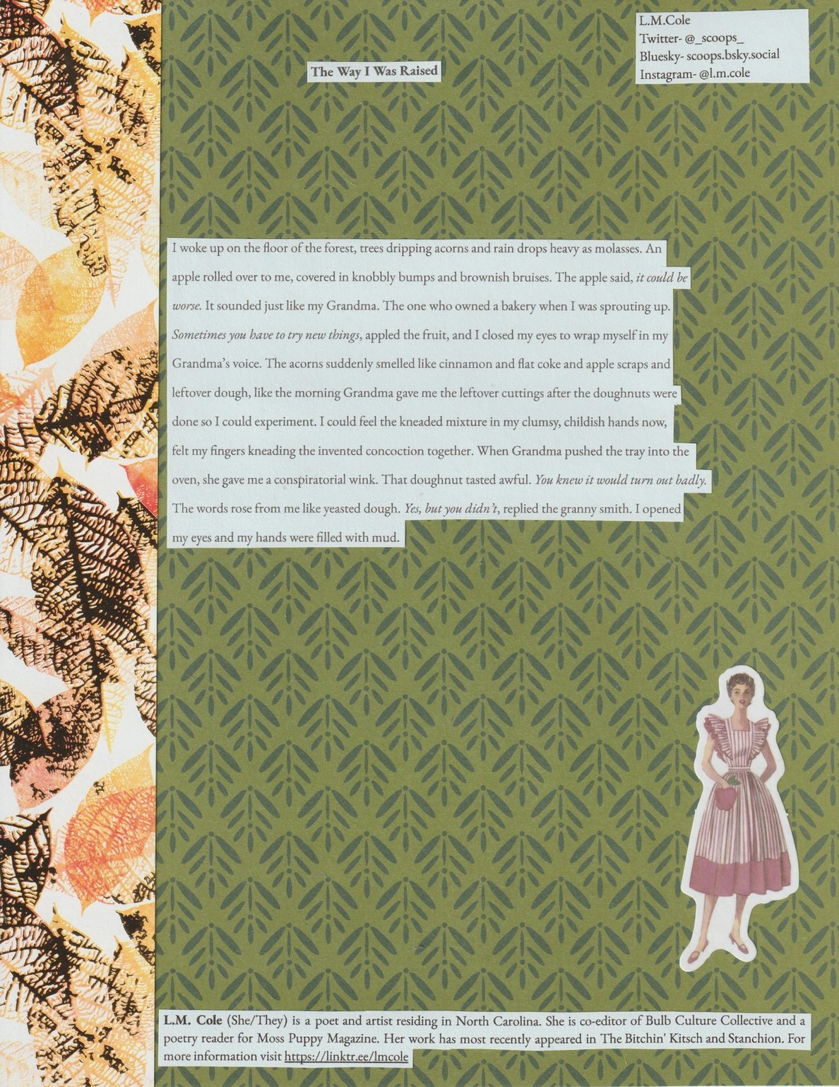 Read this prose poem, which was drafted in a workshop led by the excellent Jose Hernandez Diaz. It was published recently by Poetry As Promised Magazine in their Nostalgia issue!